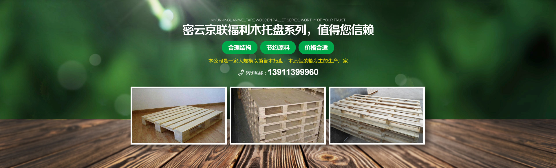北京京聯(lián)國(guó)順木制品有限公司 (原北京市密云縣京聯(lián)福利木制品廠)成立于1993年,位于北京市密云縣西田各莊鎮(zhèn)蒼頭村,占地約5000平米。我公司工廠是一家大規(guī)模以銷售木托盤(pán)為主的生產(chǎn)廠家。本工廠是一家直接采購(gòu)原木,按客戶要求生產(chǎn)規(guī)格尺寸的托盤(pán),我公司工廠位于河北省承德市有著木材加工點(diǎn),可以做到,從山上的木頭下山到客戶手中的托盤(pán)都是一手貨,減少了中間商的費(fèi)用,所以我公司售出的產(chǎn)品對(duì)北京這個(gè)龐大的市場(chǎng)來(lái)說(shuō)在同樣的規(guī)格尺寸的托盤(pán)來(lái)說(shuō)價(jià)格比較占優(yōu)勢(shì)。